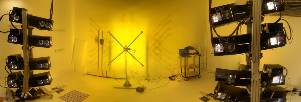 八個投影儀單元用于所需目標區(qū)域的設計和照明。每個光學投影儀單元都由一個2 kW QTH燈組成,該燈帶有一個固定在橢圓形反射鏡中的石英外殼。每個單元還包含一個均質組件,以實現所需的均勻性要求。在精心設計和微調系統后,成功實現了空間均勻性規(guī)范。
